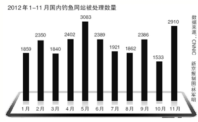 中國IDC評述網(wǎng)12月06日報道:中國互聯(lián)網(wǎng)絡(luò)信息中心(CNNIC)昨日發(fā)布了《2012年中國反釣魚網(wǎng)站聯(lián)盟工作報告》(下稱《報告》)?!秷蟾妗凤@示,2012年1月1日至11月20日,中國反釣魚網(wǎng)站聯(lián)盟共處理釣魚網(wǎng)站24535個,較2011年同期下降33%。